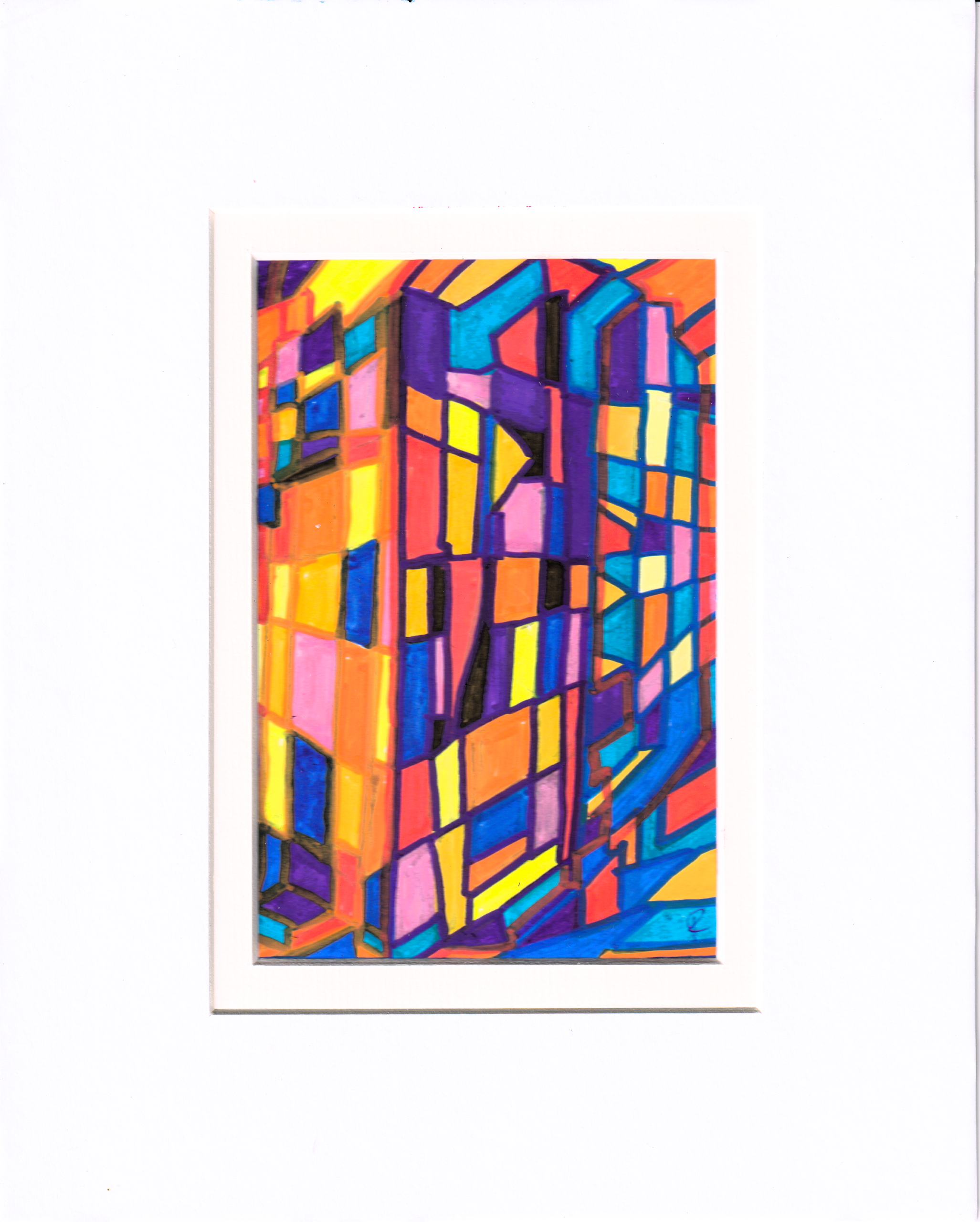 Vor Ort fand er das Gebäude in heftiger Diskussion mit sich selbst. Die violetten Stockwerke behaupteten, sie lägen ganz unten. Die gelben Fassadenteile stritten sich darüber, ob sie noch zum Haus gehörten oder schon zum Nachbarhaus. Ein orangefarbenes Treppenhaus hatte beschlossen, horizontal zu wachsen und kollidierte nun mit einem blauen Aufzugsschacht, der vertikal bleiben wollte.
