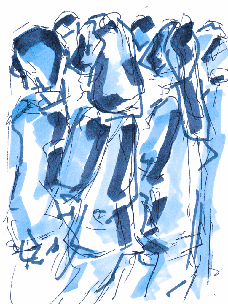 For the second time, I had the opportunity to experience Heat in the atrium of the Bergson Kunstkraftwerk. I am always a little surprised by the people who film and take photos. What about the moment of experience? My way of enjoying the moment without a smartphone: scribbling, drawing, inking, sketching, and caressing, 60 seconds per moment that flows.