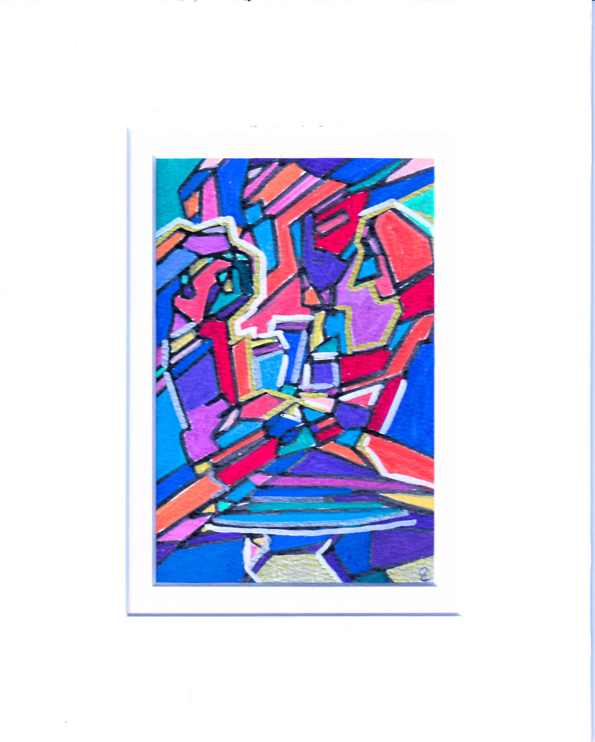 Die Farb-Kommissarin kam zur Untersuchung. Sie fand die Decke im Gespräch mit dem Boden, beide einig, dass horizontal ein provinzielles Konzept sei. Die violetten Balken hatten sich zu Argumenten verdreht. Die rosa Flächen erröteten über ihre eigene Kühnheit. Blaue Schatten fielen nach oben.