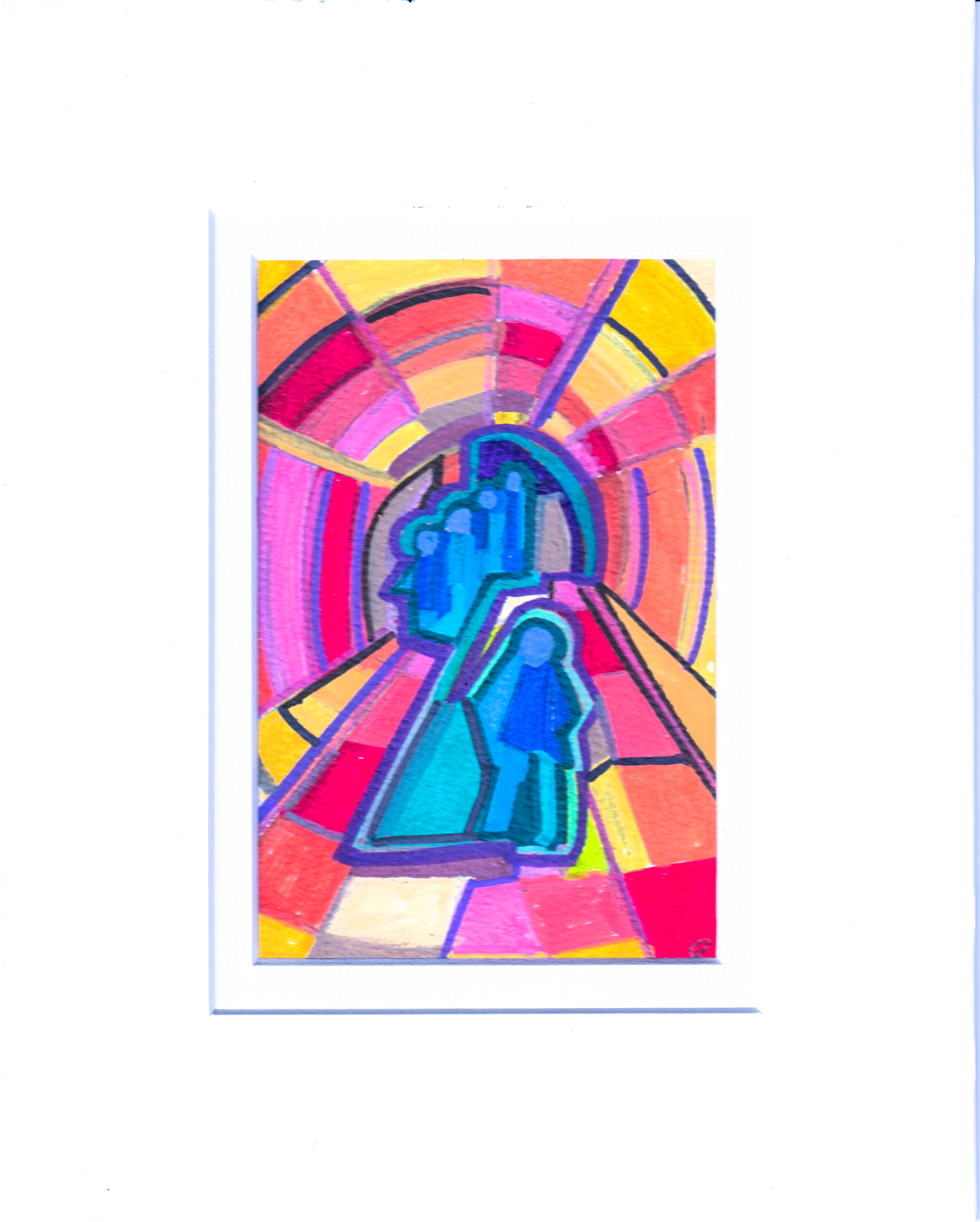 She stopped walking. Immediately, the tunnel stopped existing. Not disappeared—simply became unnecessary. The colors sighed with relief and went to be other shapes elsewhere.